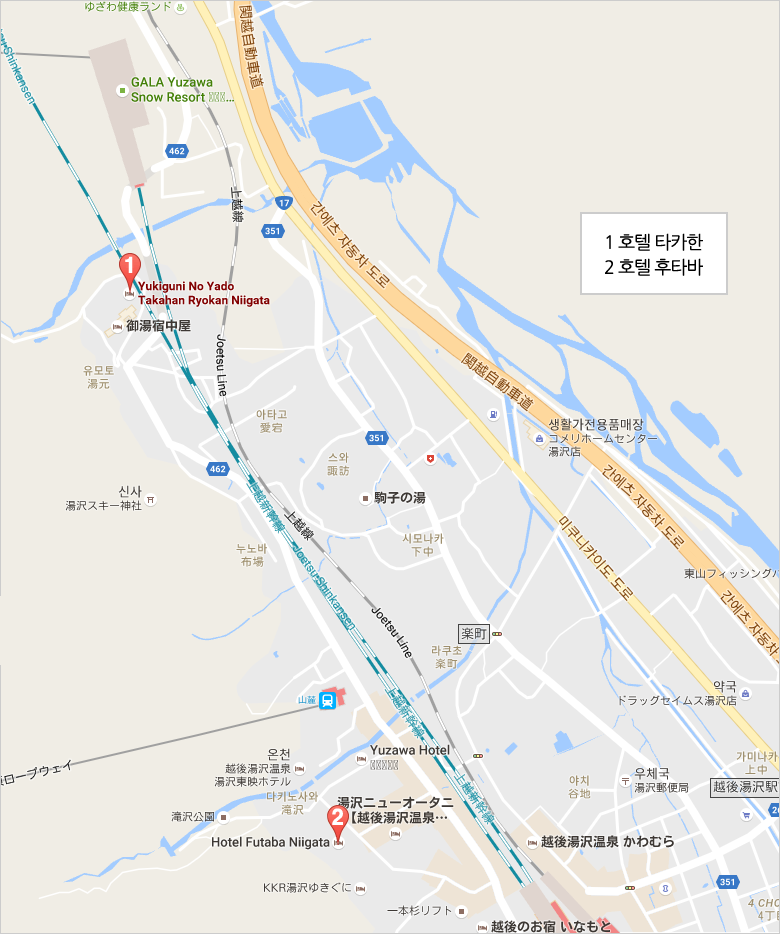 À¯ÀÚ¿Í(Yuzawa)ÀÇ ºô¸®Áö¿¡ ÀÖ´Â °¢ È£ÅÚÀÇ À§Ä¡¸¦ º¸¿©ÁÖ´Â ÁöµµÀÔ´Ï´Ù. È£ÅÚÀº ½ºÅ°½ºÅ°´åÄÄ¿¡¼ ¼±Á¤ÇÏ¿© »ç¿ëÇÏ´Â °÷À¸·Î ÃÖ°íÀÇ ½Ã¼³¿¡ Àú·ÅÇÑ ¿ä±Ý ±×¸®°í °¡Àå ÁÁÀº °÷¿¡ À§Ä¡Çϰí ÀÖ½À´Ï´Ù.
