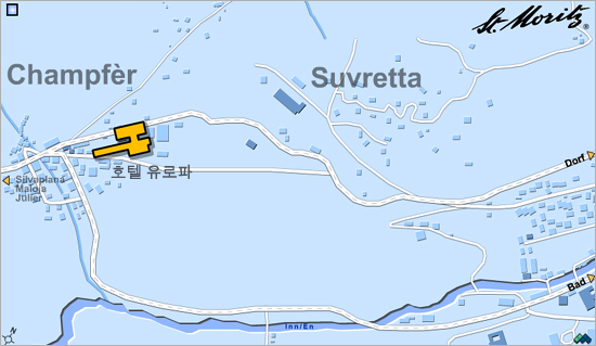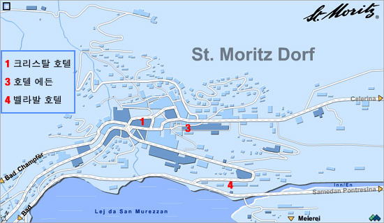 ½ß ¸ð¸®Ã÷(St, Moritz) ½ºÅ°Áö¿ªÀÇ Á᫐ ¸¶À»ÀÎ ½ß¸ð¸®Ã÷ µ¹ÇÁ(Dorf), èÇÁÆä¸£(Champfer), ½´ºê·¹Å¸(Suvretta) ºô¸®Áö¿¡ À§Ä¡ÇÑ °¢°¢ÀÇ È£ÅÚÀÇ À§Ä¡¸¦ ³ªÅ¸³»´Â ÁöµµÀÔ´Ï´Ù. À̰÷¿¡ ³ª¿ÍÀÖ´Â °¢ È£ÅÚÀº ½ºÅ°½ºÅ°´åÄÄ¿¡¼ ¼±Á¤ÇÏ¿© »ç¿ëÇÏ´Â ÃÖ°íÀÇ ½Ã¼³°ú °¡Àå ÁÁÀº°÷¿¡ À§Ä¡Çϰí ÀÖ½À´Ï´Ù.