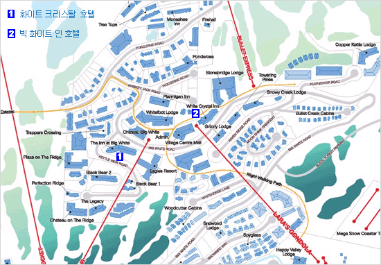 ºò ÇÏÀÌÆ®(Big White), ½Ç¹ö½ºÅ¸(SilverStar), ¼± ÇȽº(Sun Peaks) ºô¸®Áö¿¡ À§Ä¡ÇÑ °¢ È£ÅÚÀÇ À§Ä¡¸¦ º¸¿©ÁÖ´Â ÁöµµÀÔ´Ï´Ù. À̰÷¿¡ ³ª¿ÍÀÖ´Â °¢ È£ÅÚÀº ½ºÅ°½ºÅ° ´å ÄÄ¿¡¼ ¼±Á¤ÇÏ¿© »ç¿ëÇÏ´Â ÃÖ°íÀÇ ½Ã¼³°ú °¡Àå ÁÁÀº °÷¿¡ À§Ä¡Çϰí ÀÖ½À´Ï´Ù.