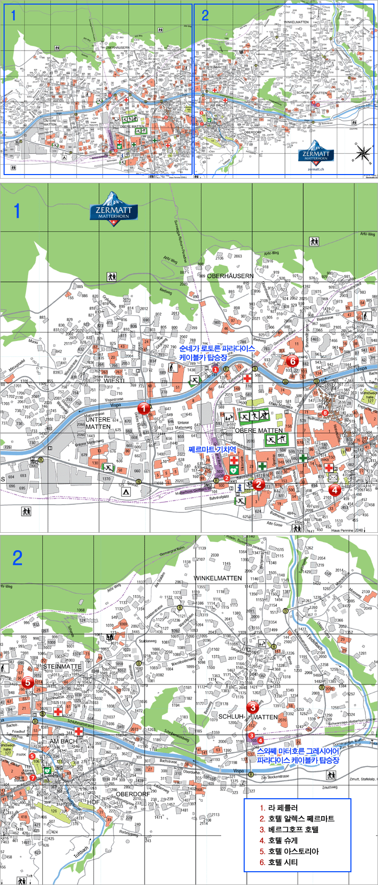 Ÿ£¸¶Æ®(Zermatt) ºô¸®ÁöÀÇ °¢ È£ÅÚÀÇ À§Ä¡ Áöµµ